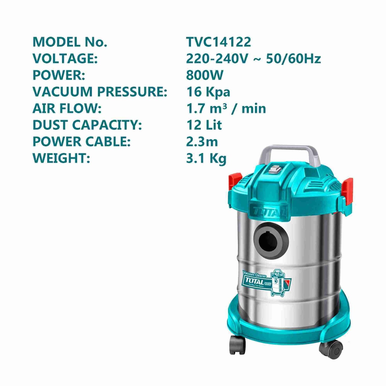 ASPIRADORA ELÉCTRICA 800W 12L TANQUE DE METAL INDUSTRIAL – TVC14122
