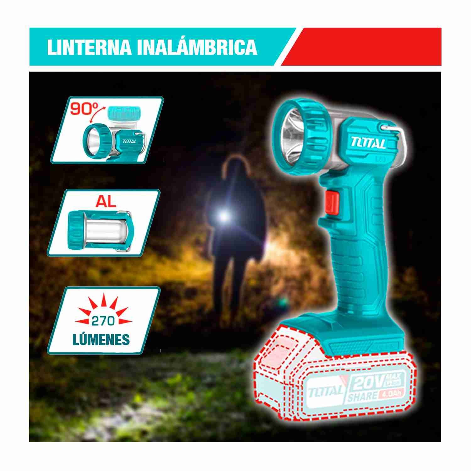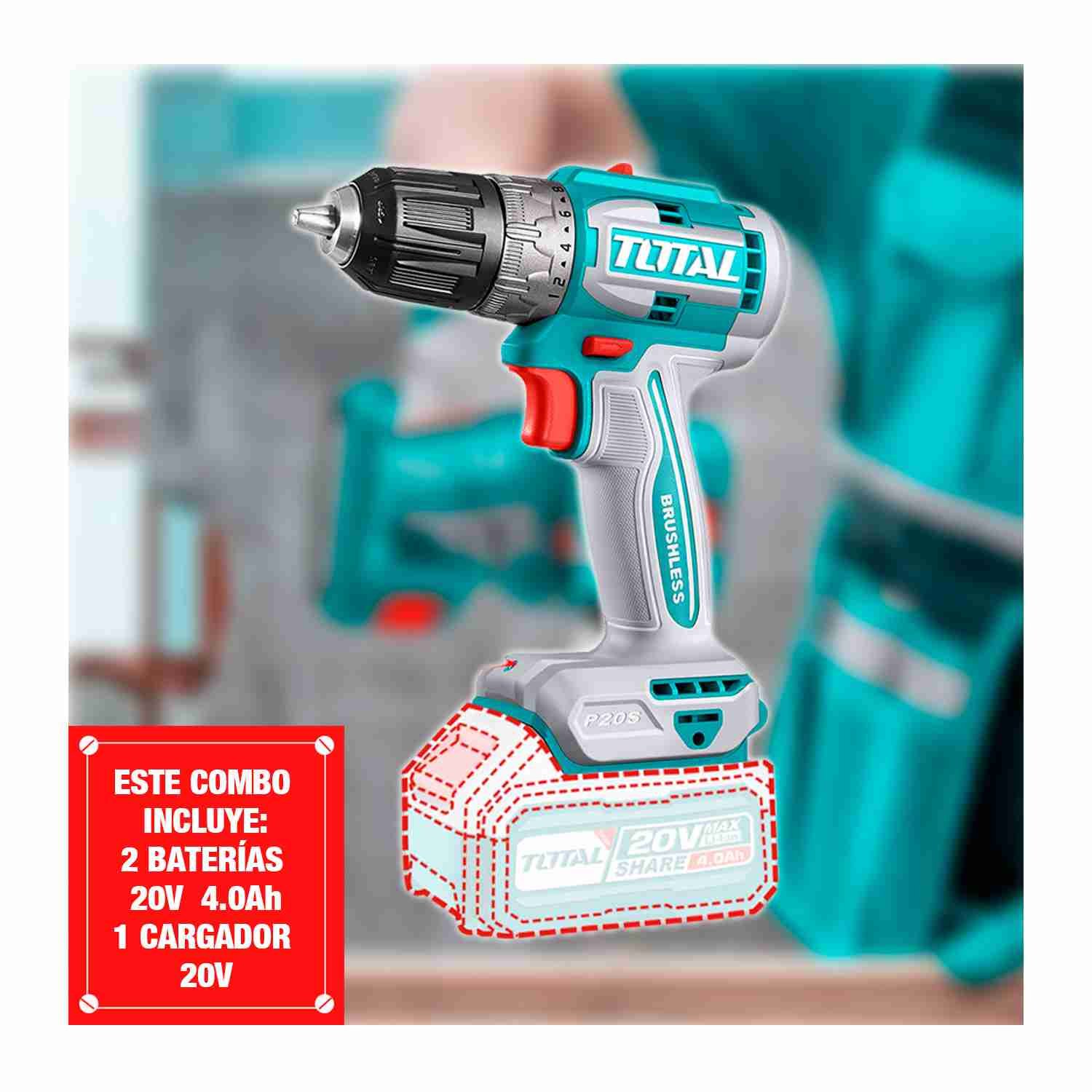 Atornillador + Amoladora + Rotomartillo +linterna 20v- Total