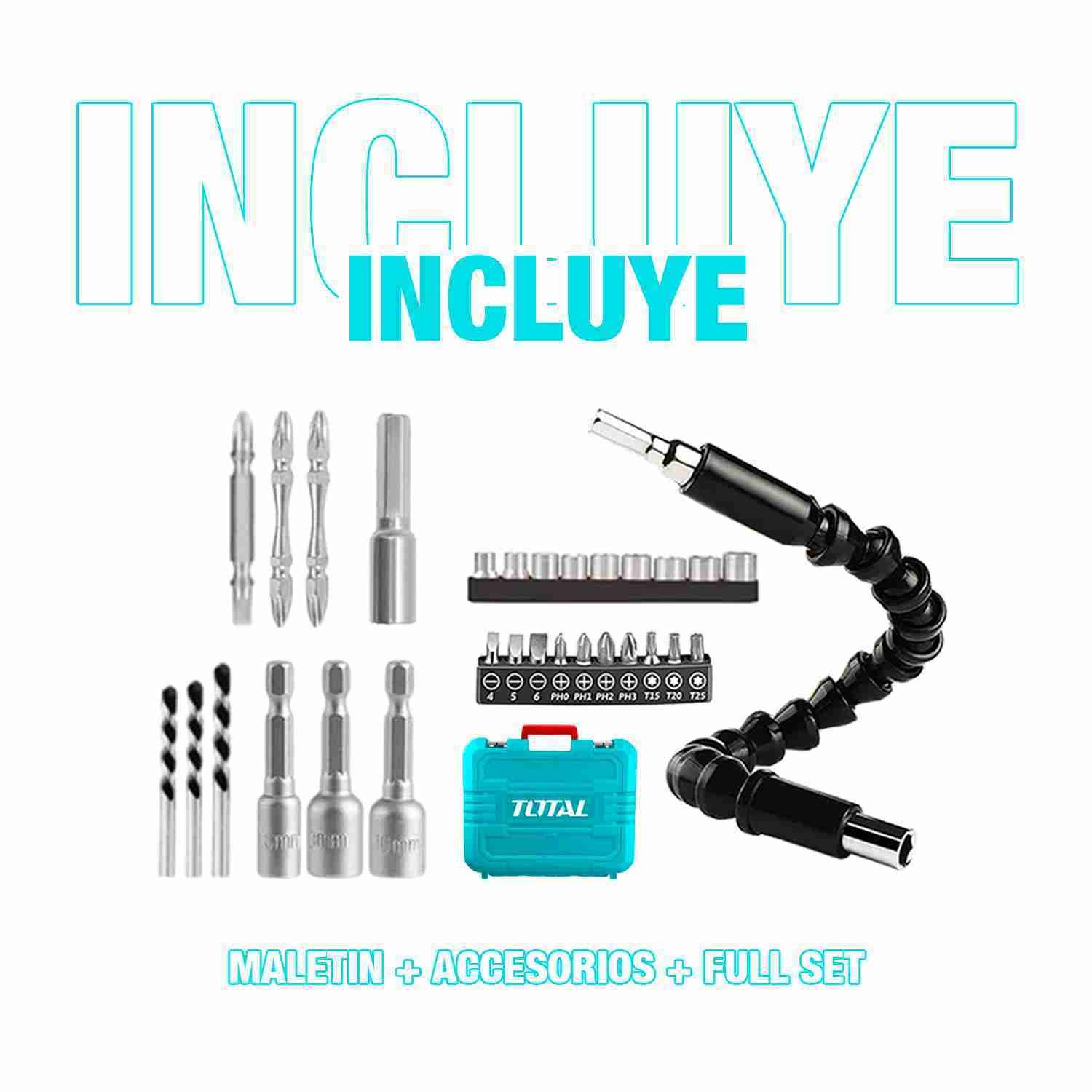 ESTE COMBO INCLUYE: 1 ATORNILLADOR DE IMPACTO + 2 PUNTAS DE DESTORNILLADOR + 3 PIEZAS DE TUERCAS + FULLSET + MALETIN DE TRASPORTE