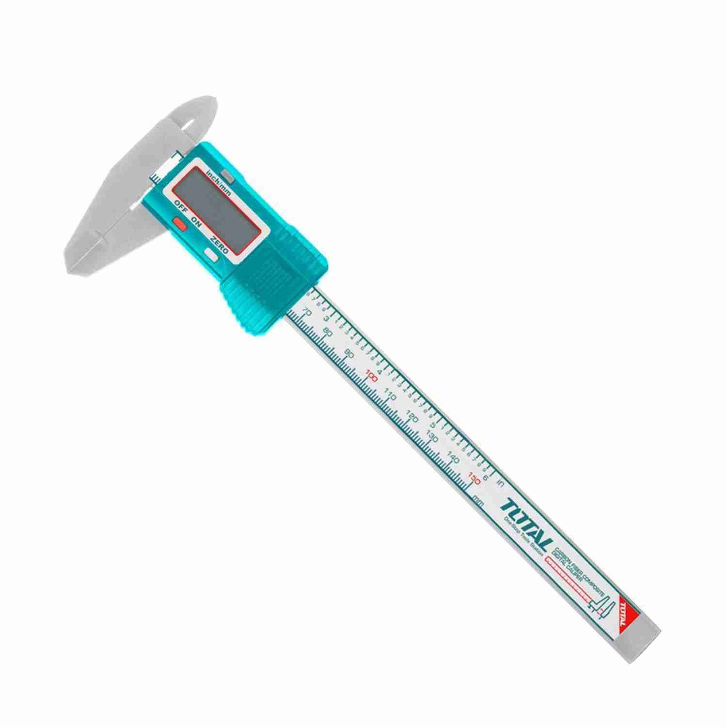 El calibrador Vernier Digital Pie de Rey de 150mm TOTAL es la herramienta ideal para quienes buscan precisión y facilidad en sus mediciones. Diseñado para brindar resultados exactos con solo un vistazo, su sistema digital permite una lectura rápida y sin margen de error, optimizando tu tiempo y mejorando tu productividad. Su diseño ergonómico y funcionalidad versátil lo convierten en un aliado indispensable tanto para profesionales como para aficionados al bricolaje, garantizando una experiencia de medición cómoda y eficiente. Con TOTAL, la precisión está en tus manos.