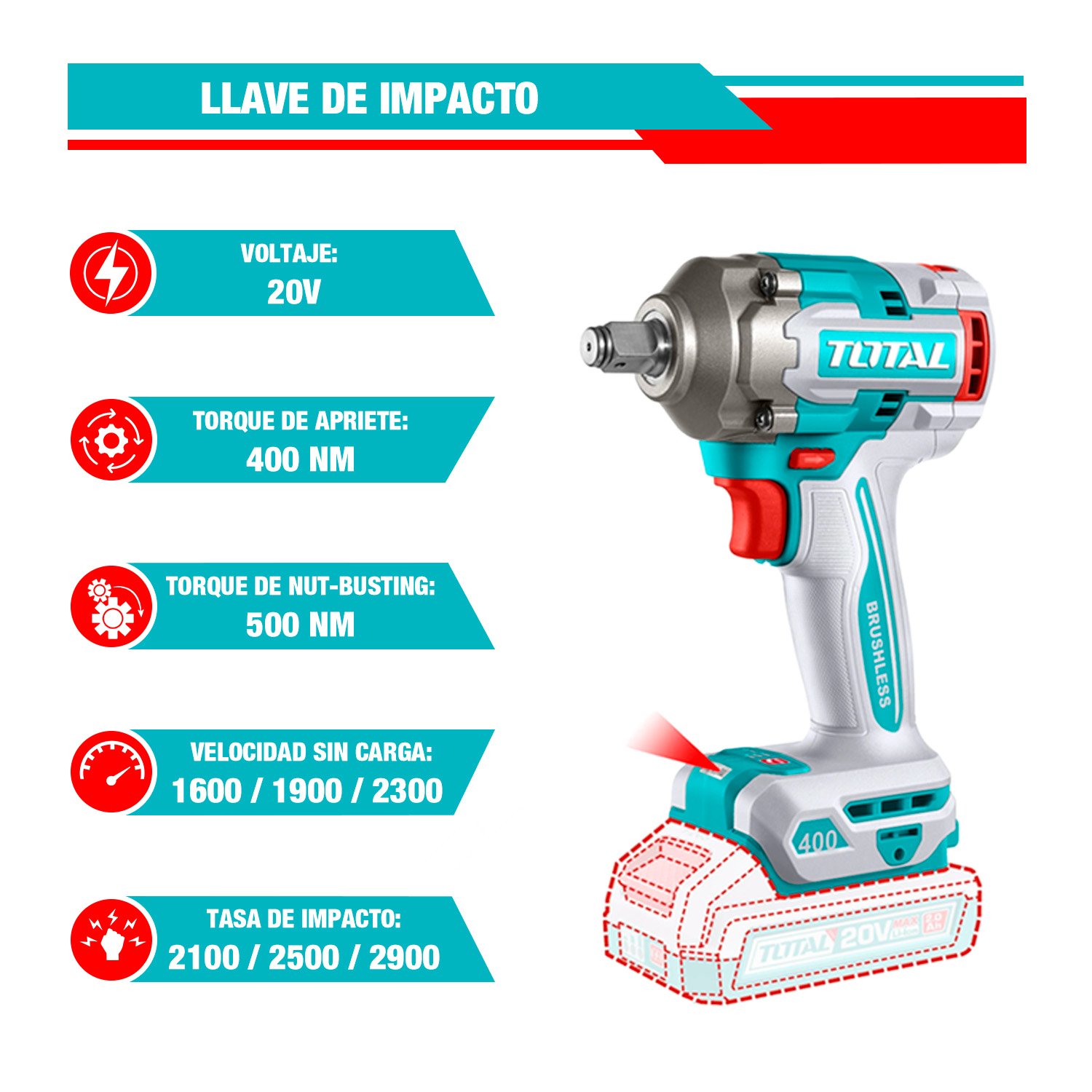 LLAVE DE IMPACTO 1/2'' 400Nm INLÁMBRICO - TIWLI20401