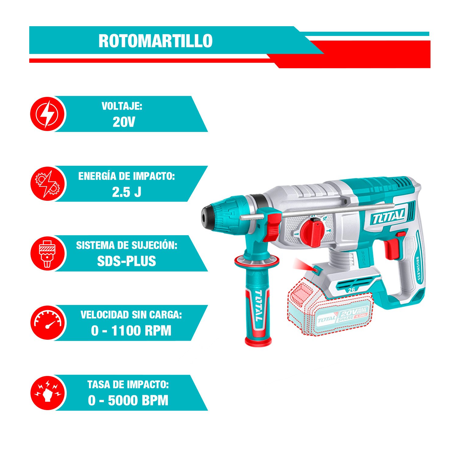 ROTOMARTILLO SDS PLUS INALÁMBRICO - TRHLI20268