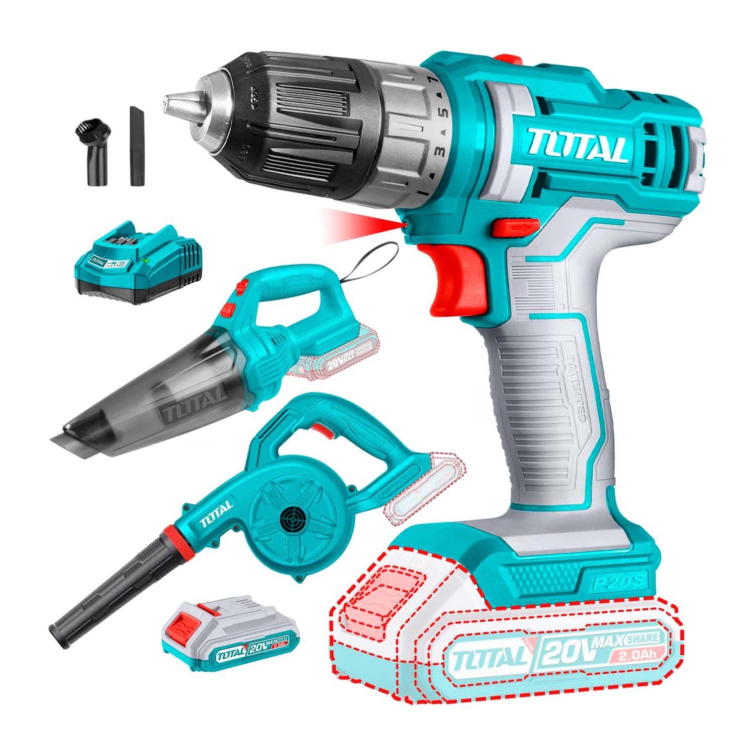 COMBO SOPLADORA + ASPIRADORA + TALADRO ATORNILLADOR TOTAL TURQUESA