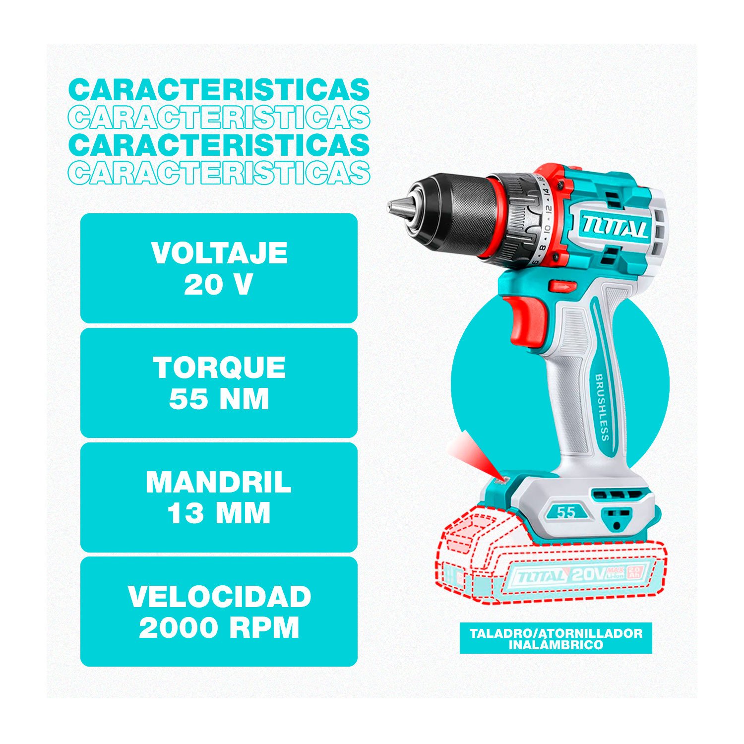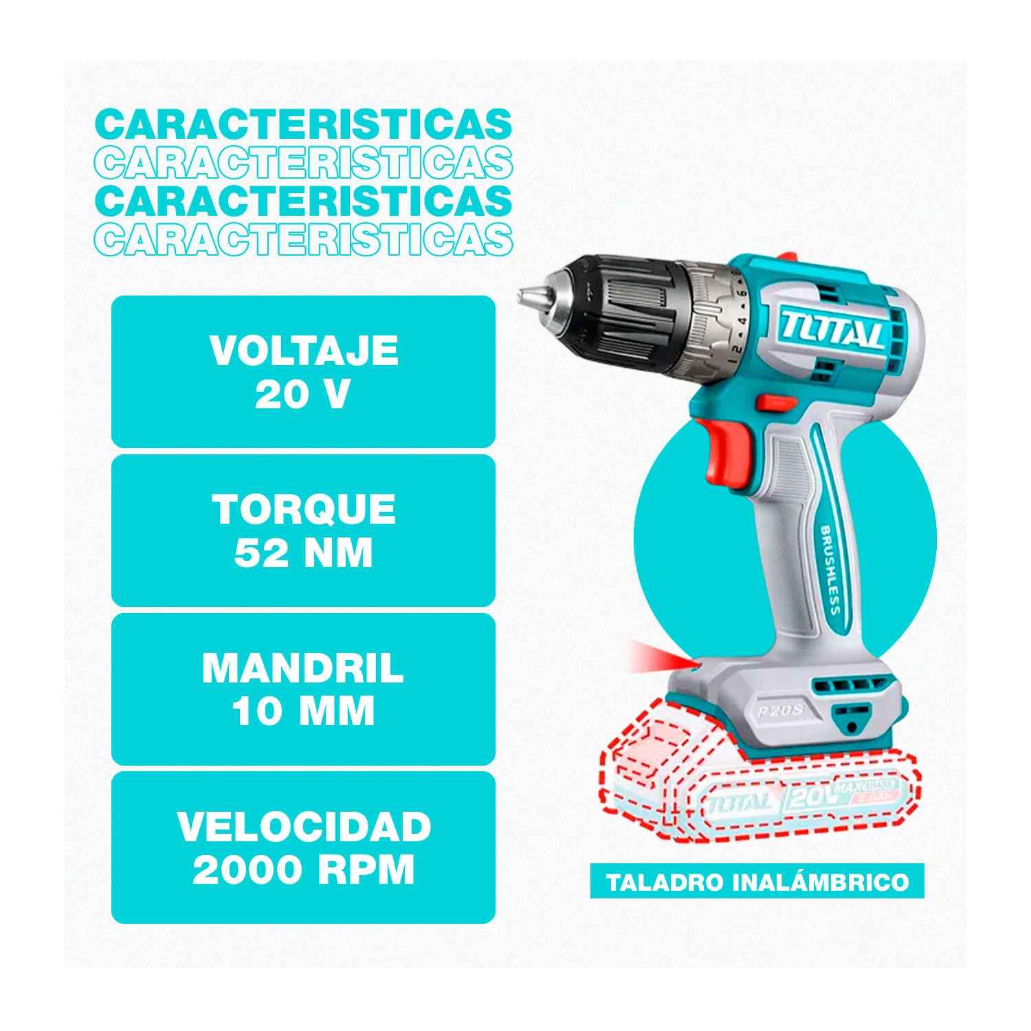 TALADRO INALAMBRICO 52NM - TDLI204531