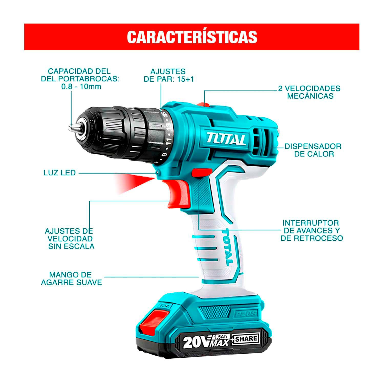 TALADRO ATORNILLADOR 20V TOTAL - TDLI20011