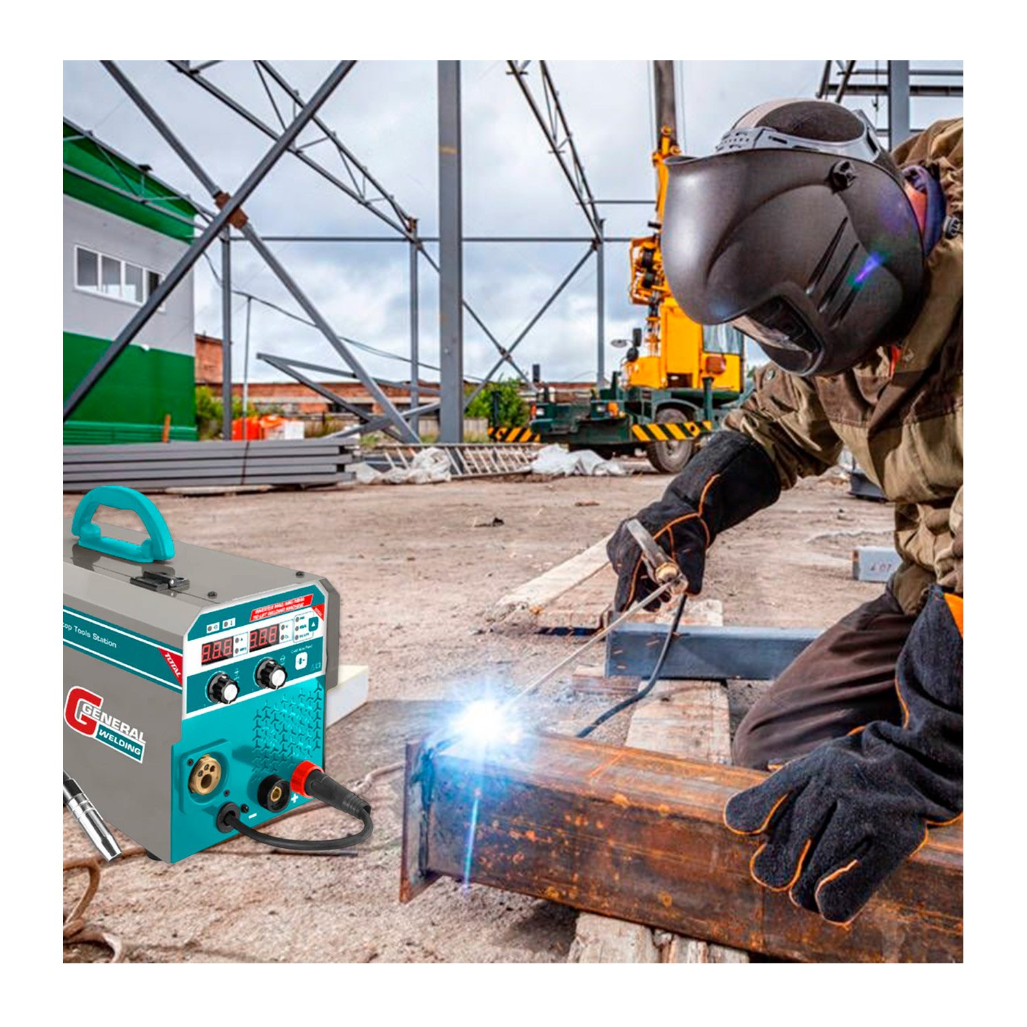Potencia y versatilidad se combinan en esta máquina de soldar profesional, diseñada para adaptarse a distintos procesos como MIG, MAG, MMA y TIG Lift. Con su tecnología inverter, ofrece un arco estable, menor consumo de energía y acabados limpios en cada trabajo. Su pantalla digital integrada facilita los ajustes de corriente y voltaje, mientras que su tamaño compacto y peso ligero la convierten en una herramienta fácil de transportar y perfecta para talleres, proyectos industriales o trabajos de mantenimiento. Incluye los accesorios esenciales para que puedas comenzar a trabajar de inmediato, asegurando eficiencia y resultados de alta calidad en cada soldadura.