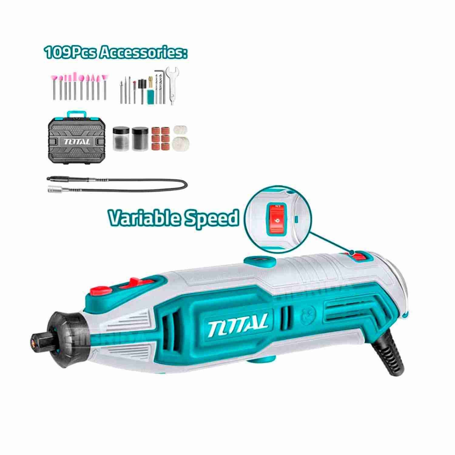 MINI GRINDER ESMERIL TOTAL 130W ELÉCTRICO 109 PIEZAS PULIDOR – TG513326