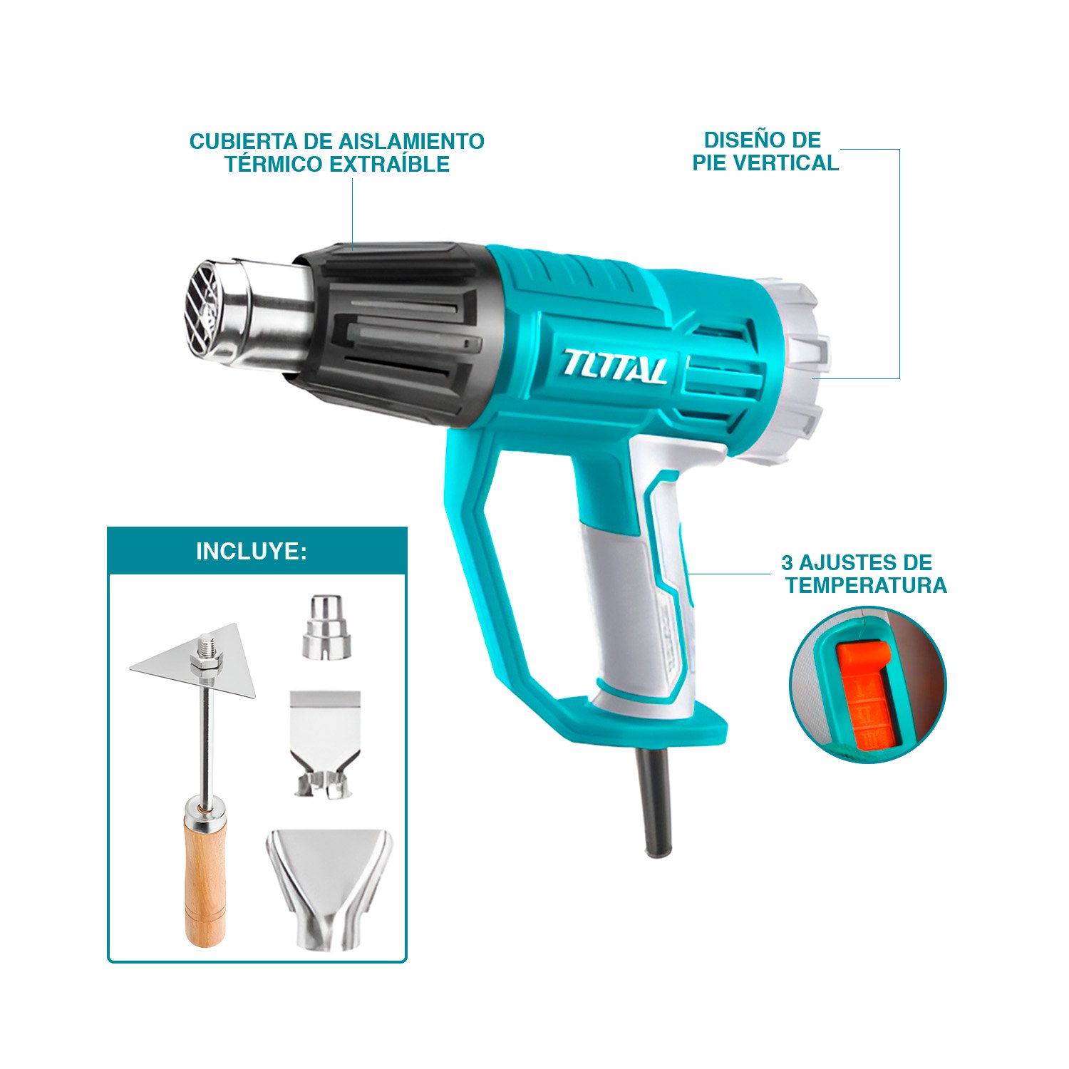 Pistola Calor 2000w +set Herramientas Multímetro Pinza Total