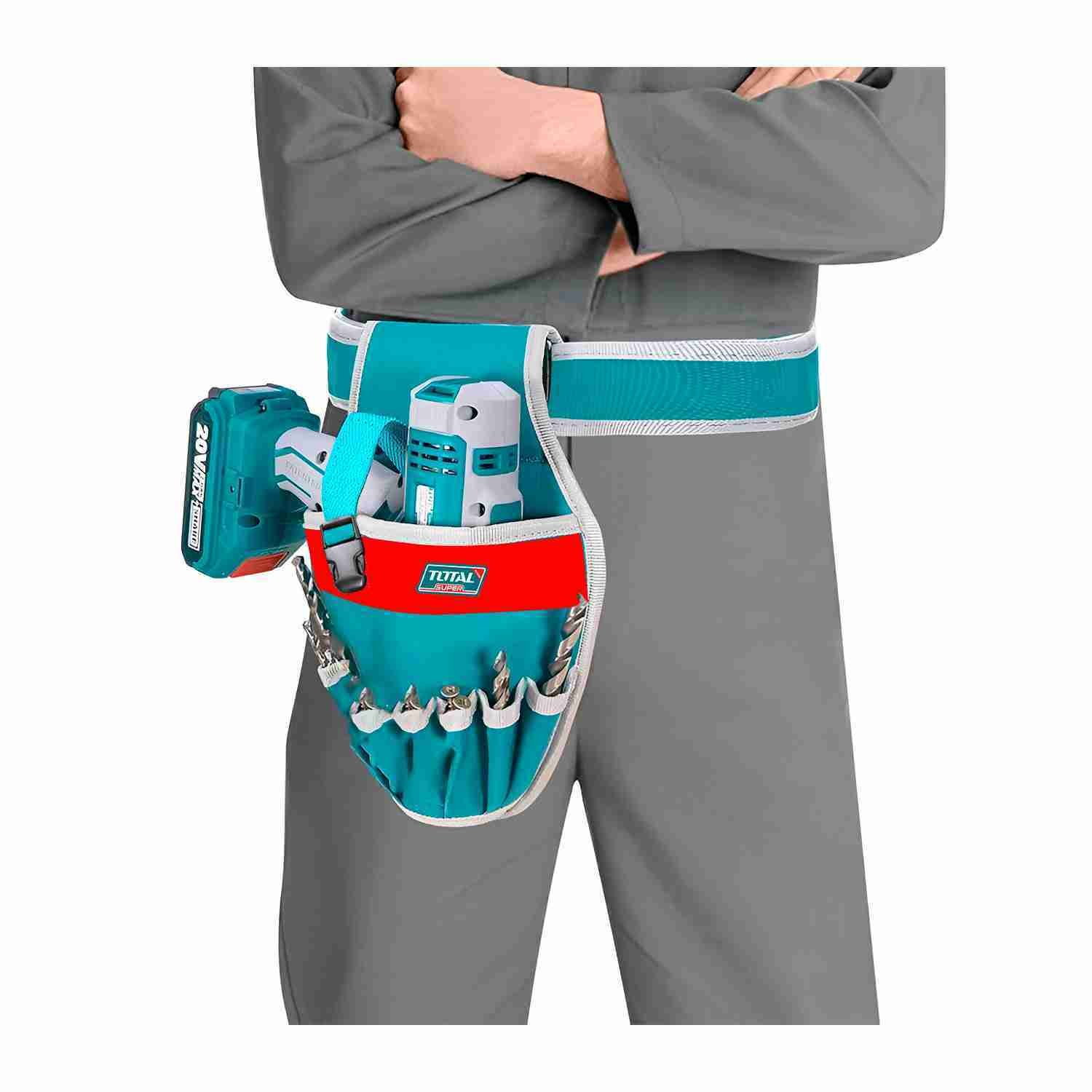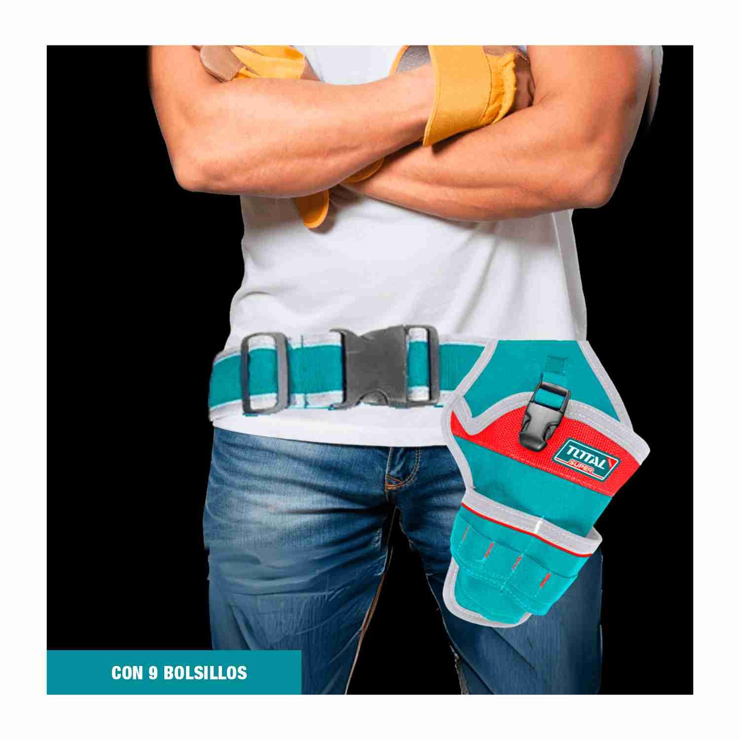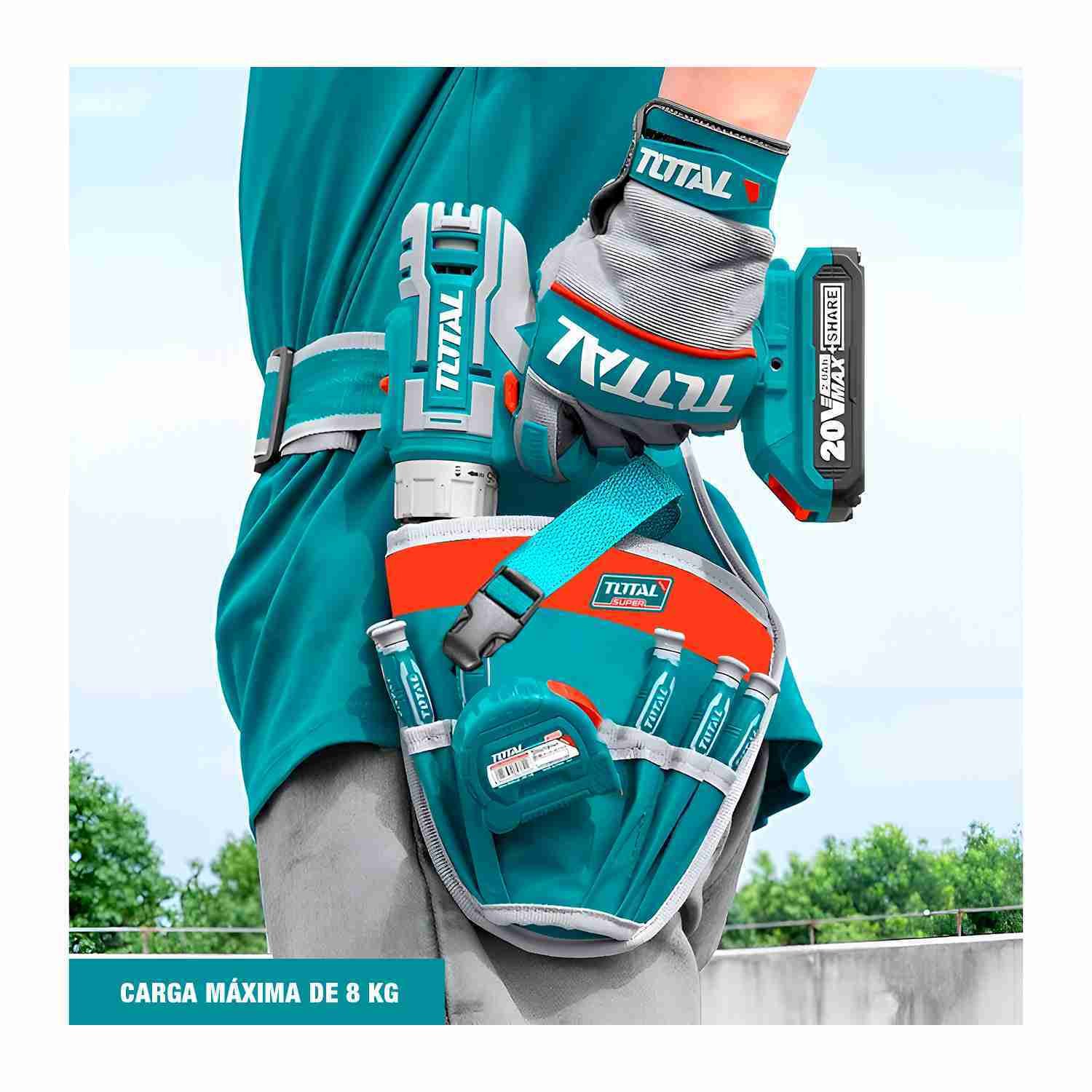 Porta Taladro Correa Bolsillo 16d 8kg + Guantes Total