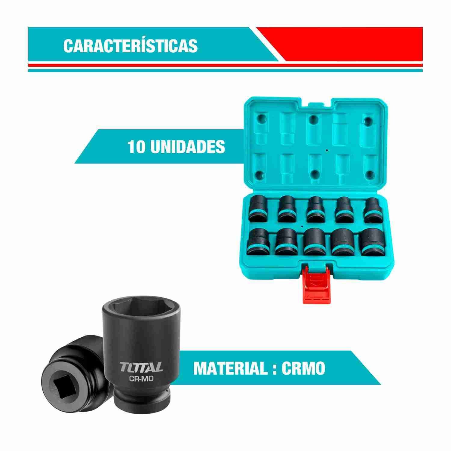 JUEGO DE DADOS DE IMPACTO DE 1/2 X 10 PZA - TOTAL - THISTD12101