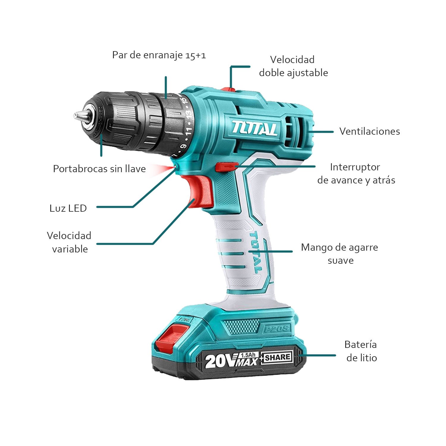 -Configuración de torque: 15 + 1