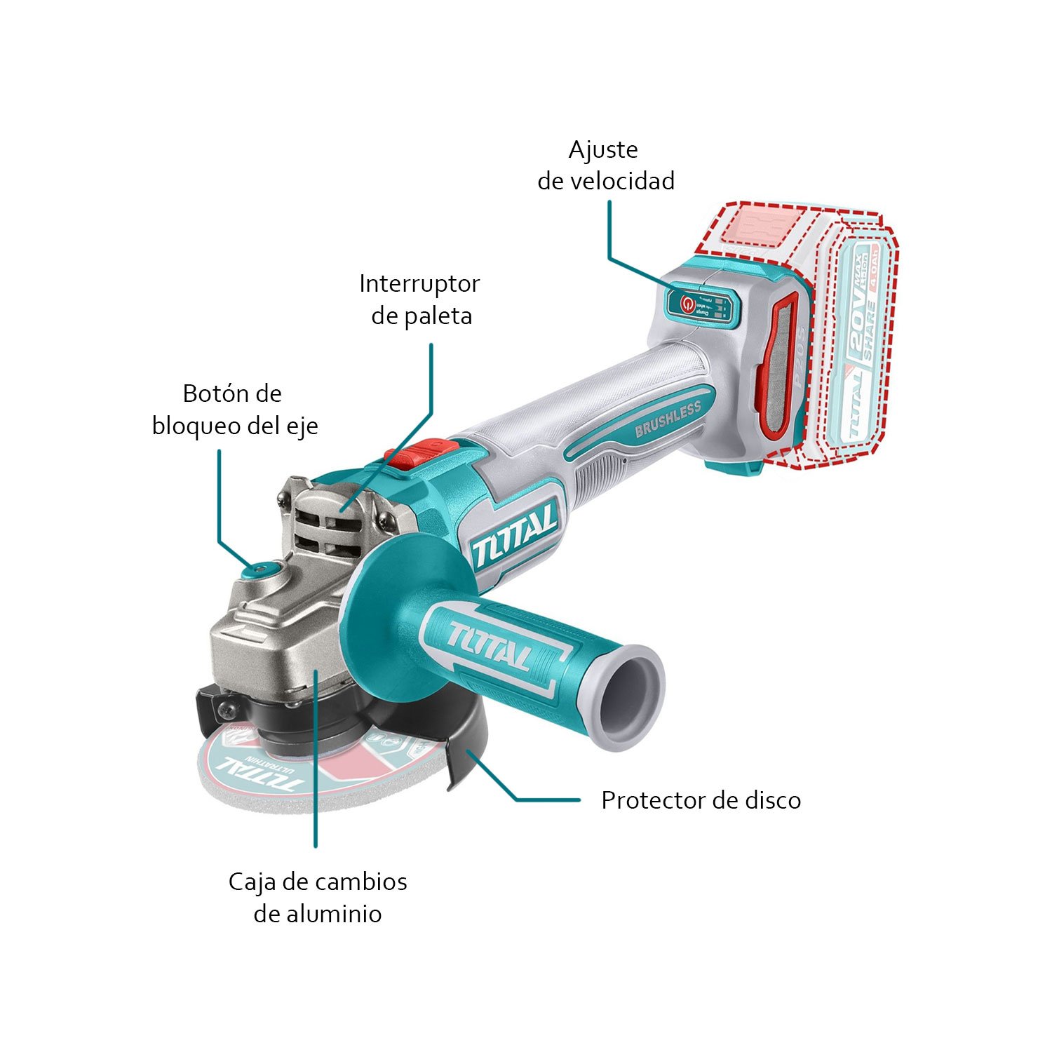 AMOLADORA ANGULAR 4.1/2" INALÁMBRICA A BATERÍA 20V BRUSHLEES - TAGLI21154