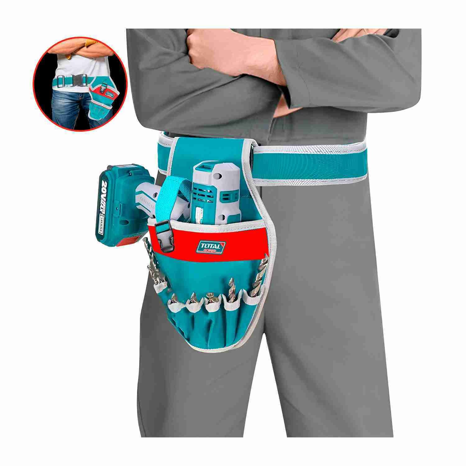 Bolsillo Integrado: Incluye un bolsillo adicional para guardar brocas, tornillos, tacos y otros pequeños accesorios que necesitas tener a mano durante tu trabajo.