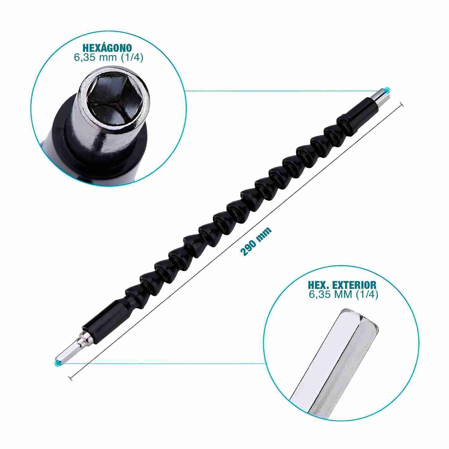 1 Eje flexible Universal (hexagonal), utilizado para Portabrocas de mano tipo eje cardán y destornillador eléctrico.