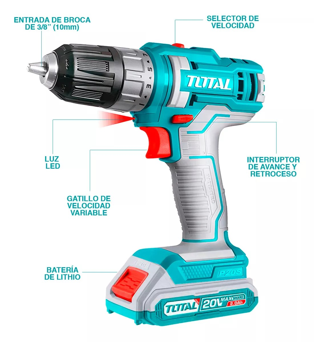 Taladro Atornillador TOTAL TDLI200518