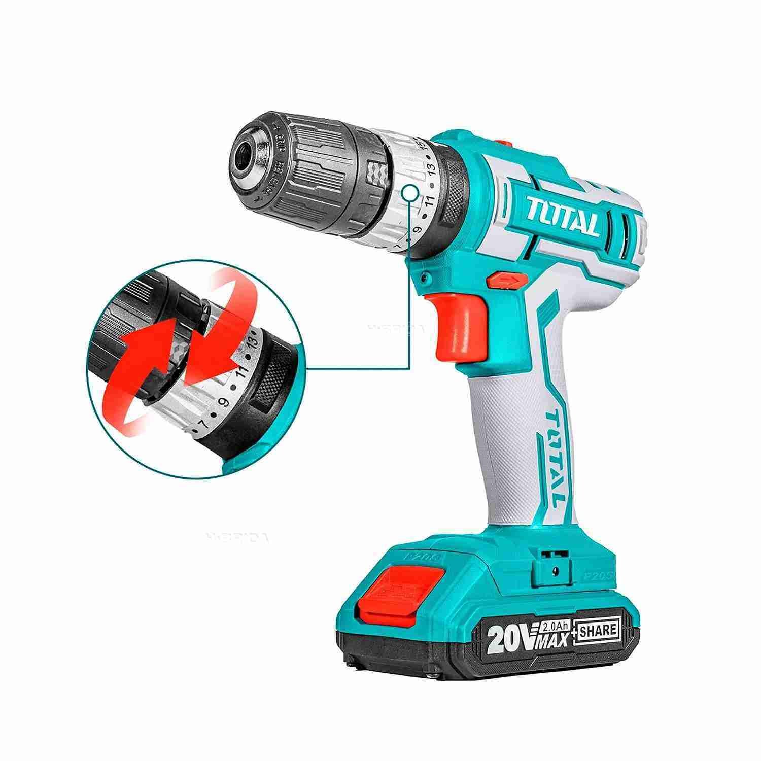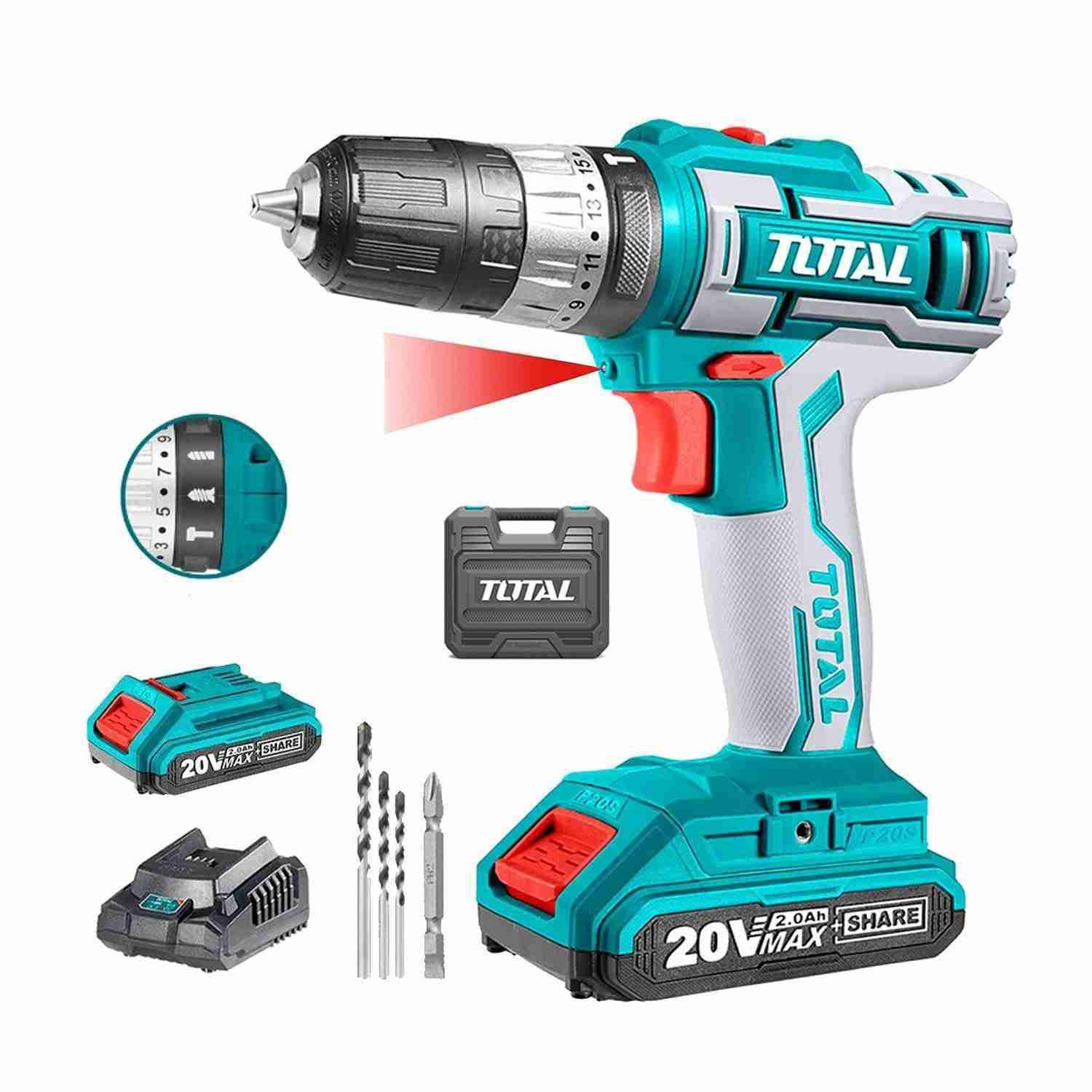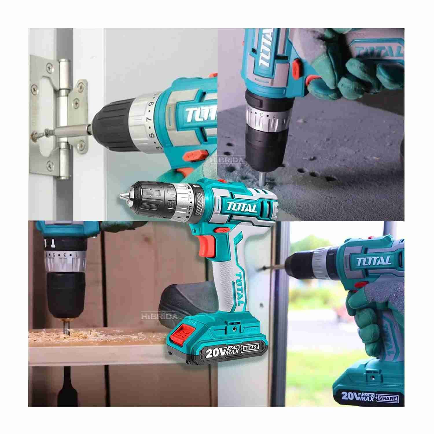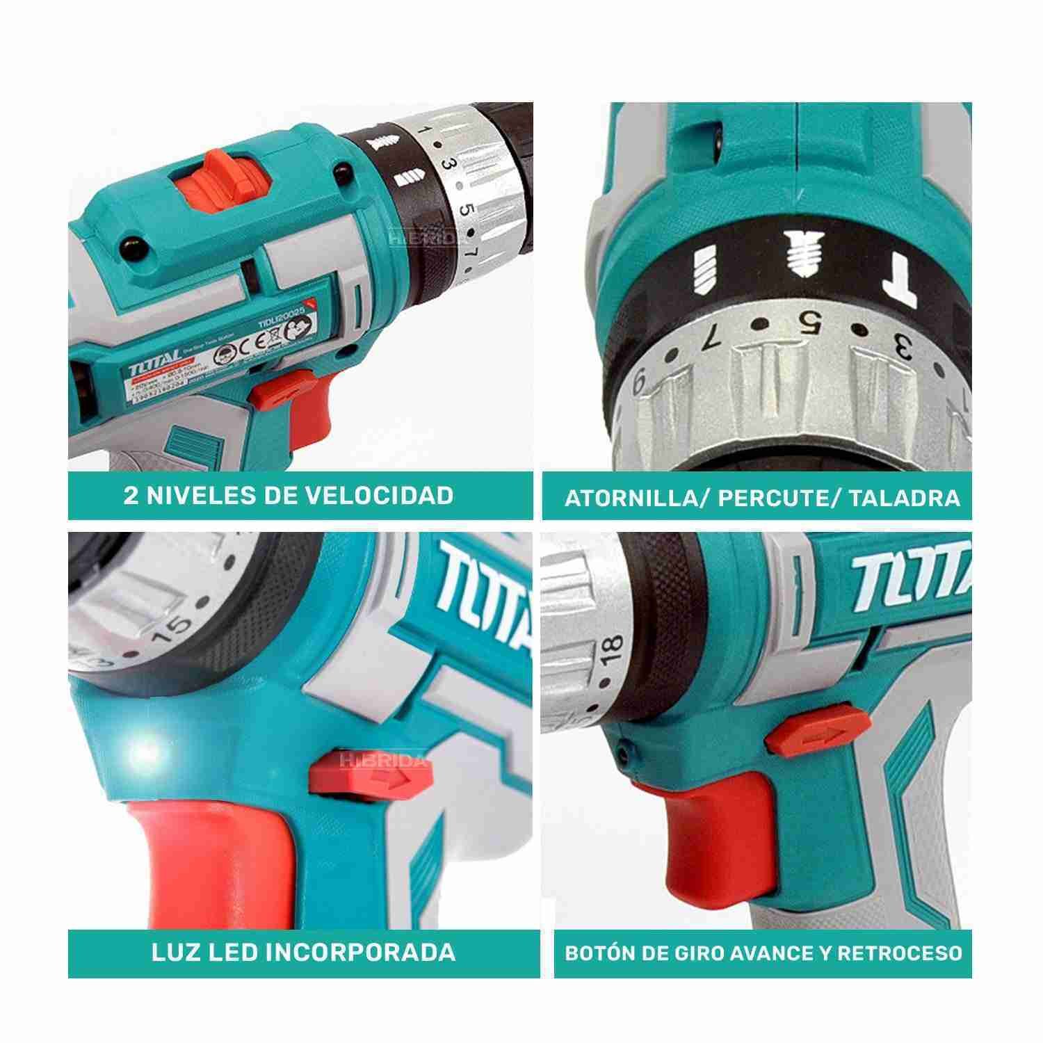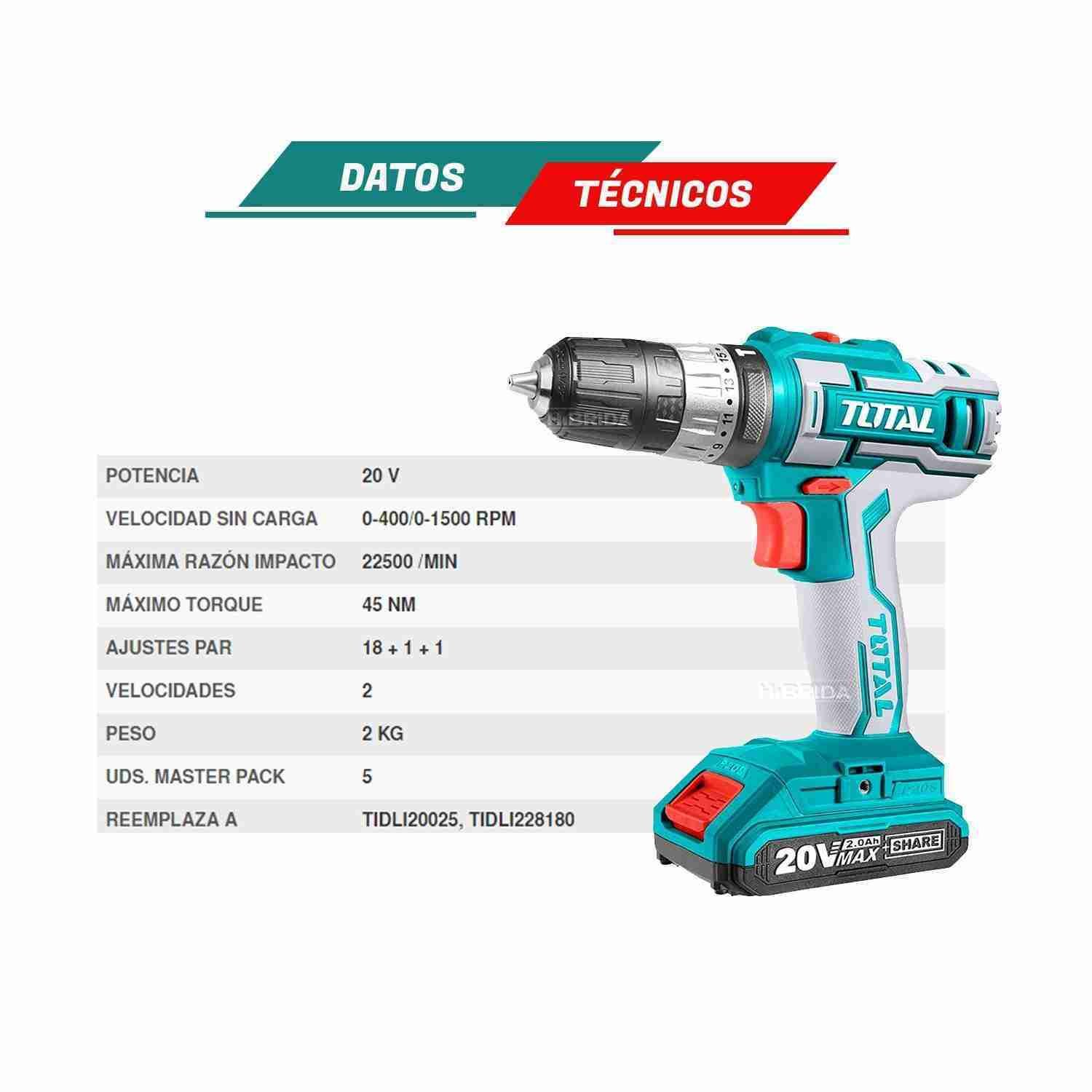 TALADRO PERCUTOR BATERIA TOTAL 20V 45NM - TIDLI200215