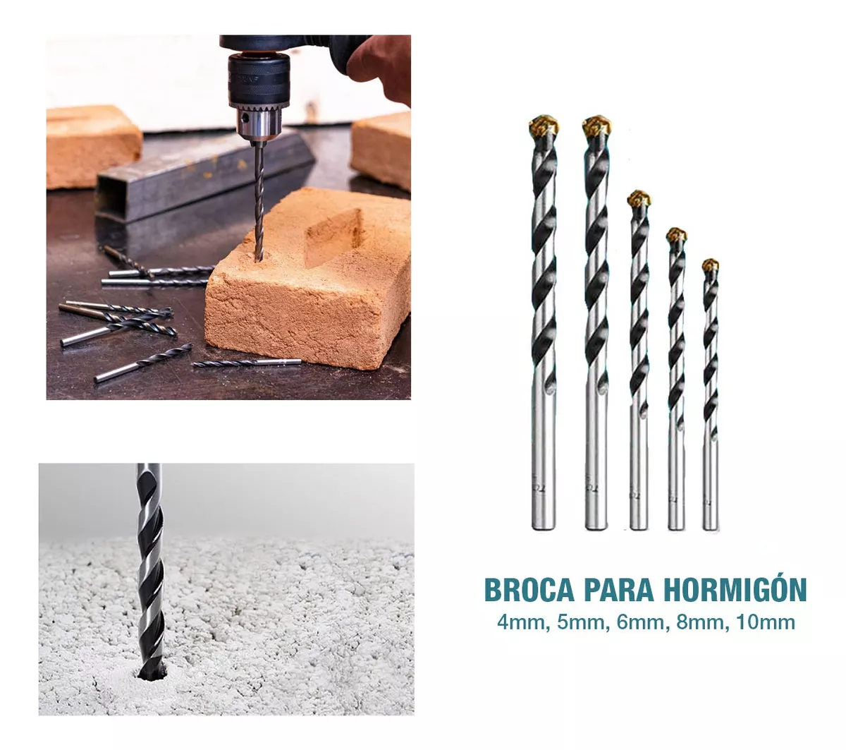 -5 brocas para concreto tamaños: 4,5,6,8,10 mm.