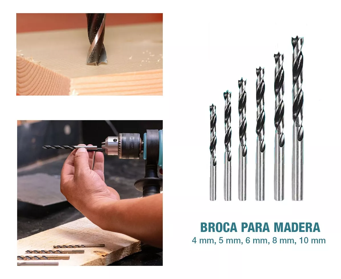 -5 Brocas para madera tamaños: 4,5,6,8,10mm.