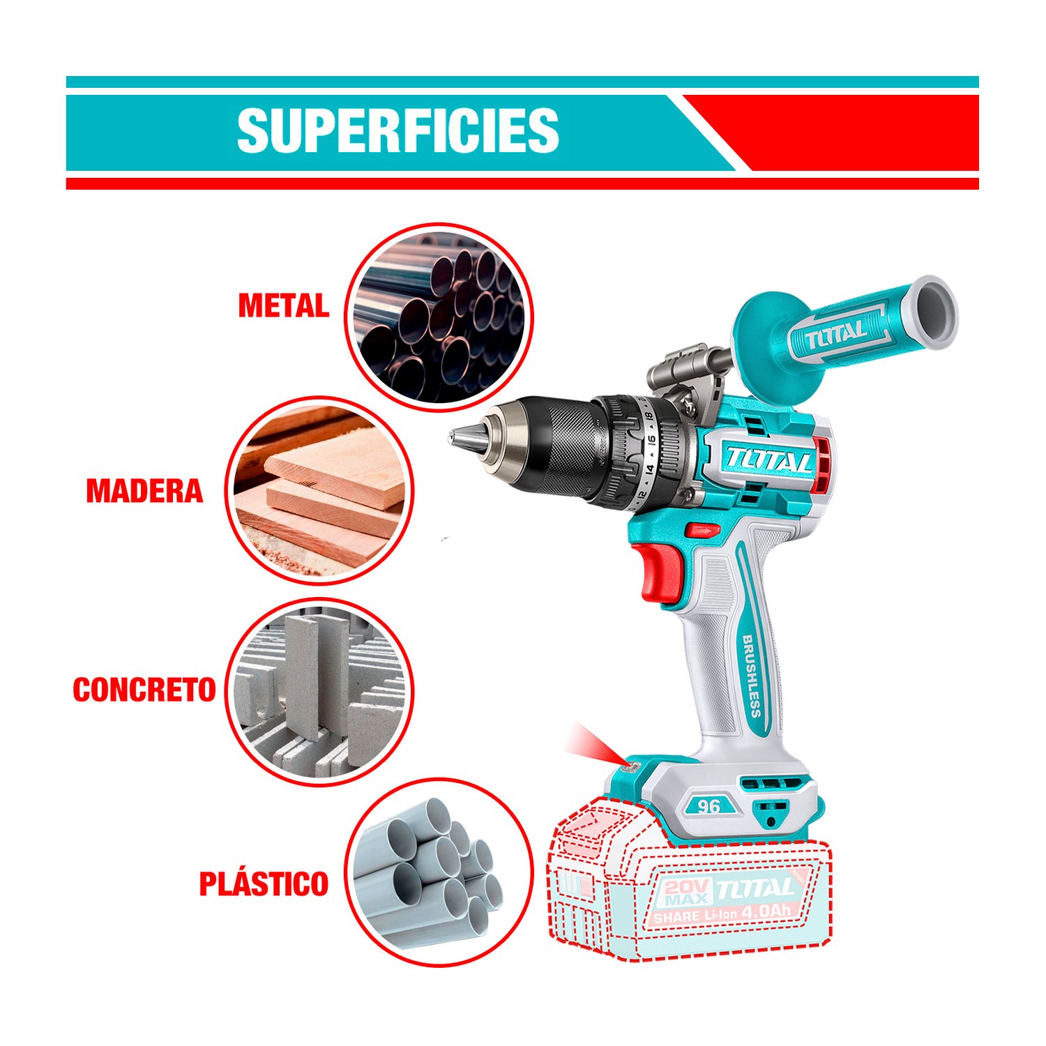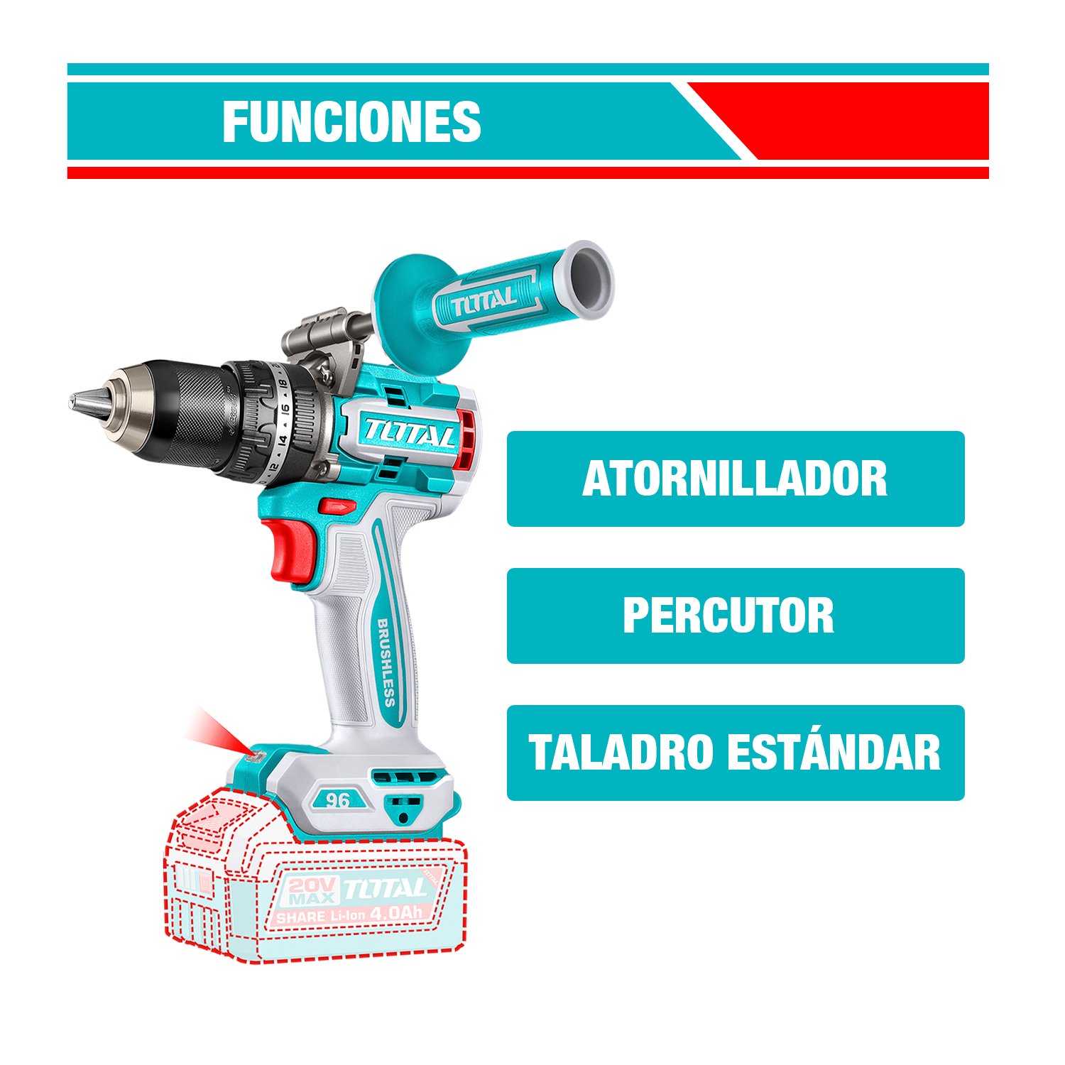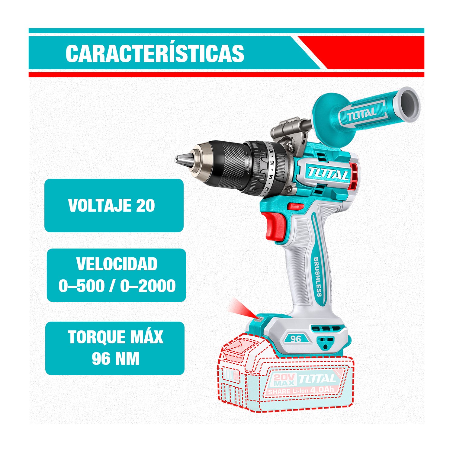FICHA TÉCNICA: TALADRO PERCUTOR INALÁMBRICO BRUSHLESS TOTAL TIDLI209685