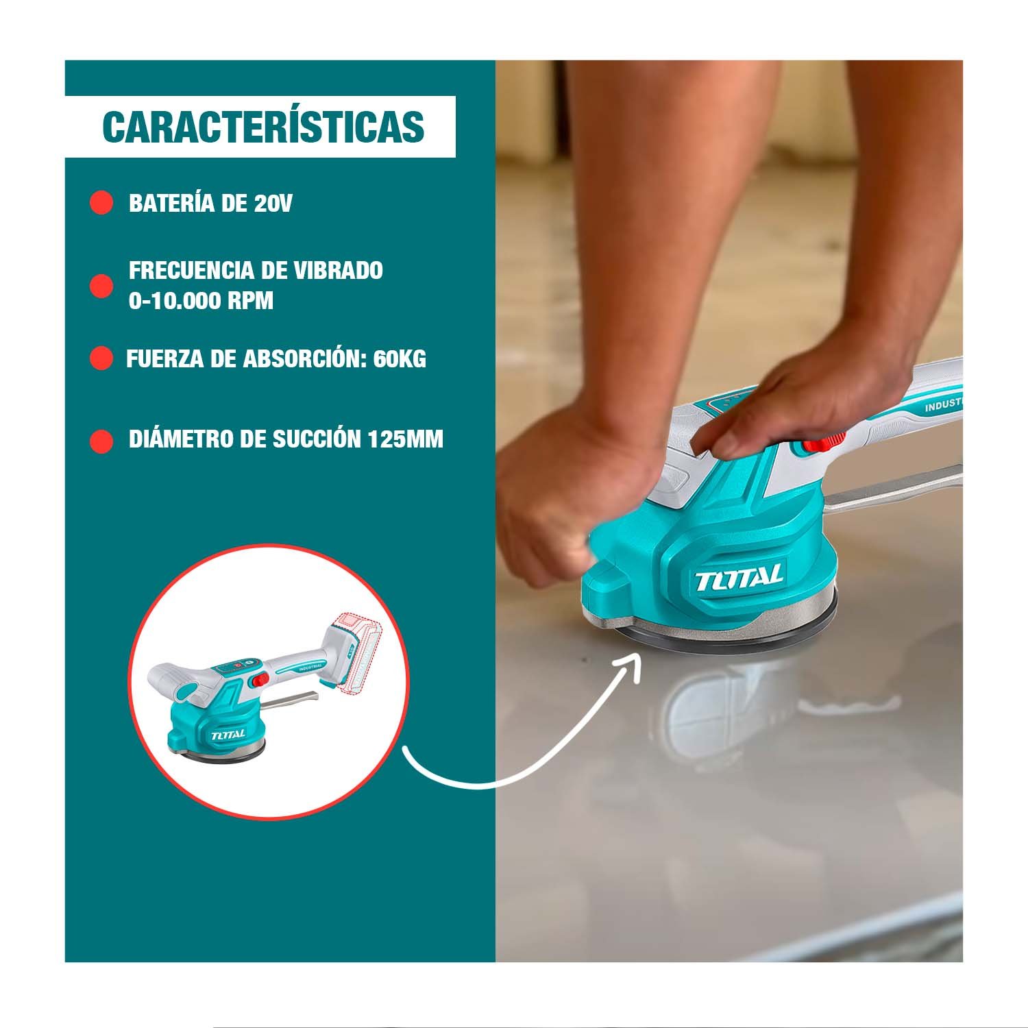 VIBRADORA MAYOLICA PESADA RODILLERAS 1BAT TOTAL TTVLI20015